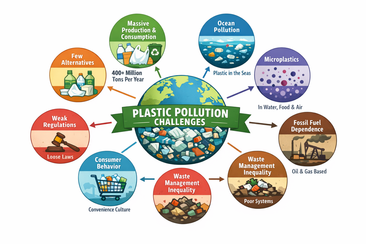 Low Recycling Rates: 10% of plastic waste is recycled globally